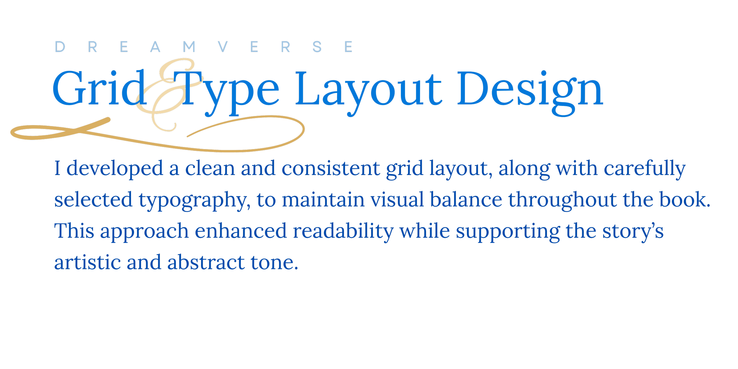 Dreamverse is a student design project that combines creative storytelling and visual design, featuring an original story inspired by real-life dreams, written entirely by myself. To bring the story to life, I designed a full book layout, starting with moodboards to establish the visual direction for the cover, page layout, and imagery. I created a grid system, typographic layout, and strategic photo placements to enhance the story’s dreamlike atmosphere. Using photos sourced from Pexels.com, I manipulated them in Adobe Photoshop to align with the story’s narrative and tone. To complete the project, I sourced a vendor to print a physical copy of the book, transforming my vision into a tangible, immersive reading experience.
